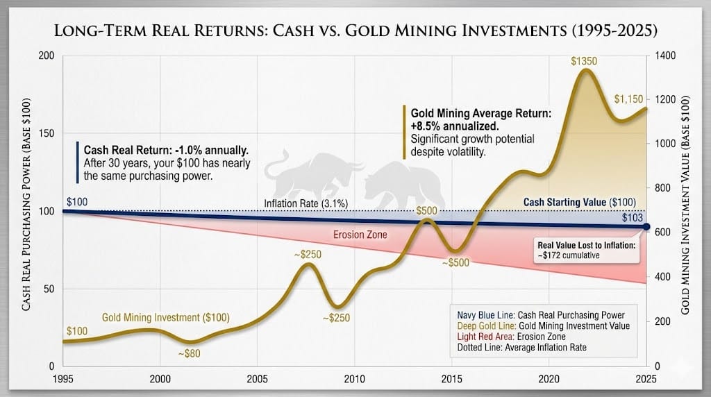 This is where gold mining becomes not a speculation, but a rational allocation. Not because gold is a "fear trade" or a hedge against collapse. But because gold mining is fundamentally a cash-flow business—the inverse of speculative commodity holding.