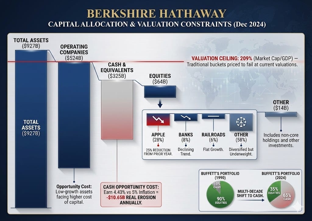 For individual investors, this might be acceptable—the psychological cost of a market drawdown might outweigh the hidden cost of inflation. But at institutional scale, this becomes operationally untenable. A $325 billion hoard is not a position of flexibility. It is a constraint. Capital this large cannot sit idle while the world restructures around it.