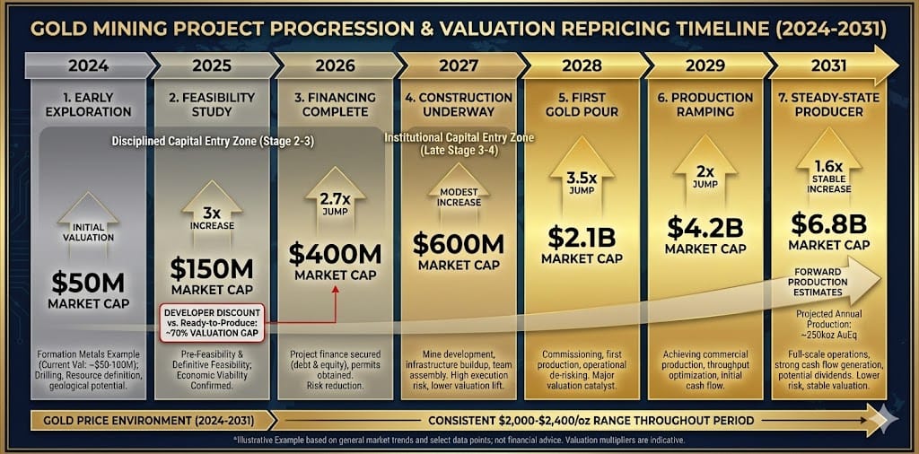But developers—those 3-5 years from production—price in far less certainty than they warrant. The market prices them as if production is unlikely, even when engineering studies prove it is probably certain. This creates a timeline-based repricing opportunity that institutional capital is only now beginning to recognize.