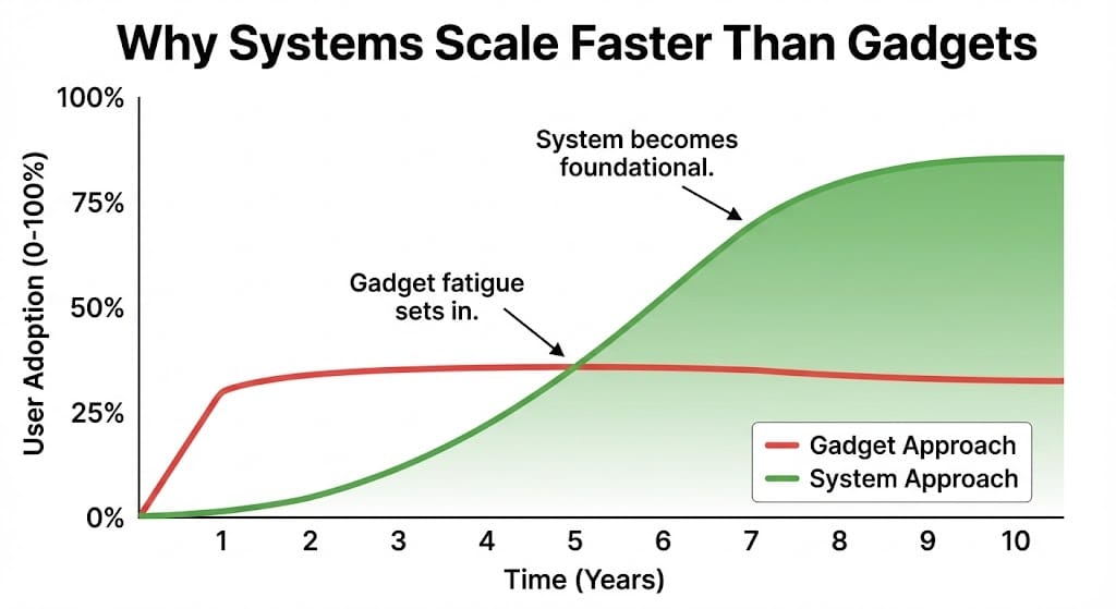 The genius wasn't any single product. It was recognizing that home automation would scale only if there was a unified system layer, not a collection of incompatible gadgets.