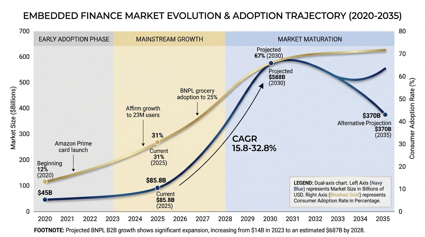 The market is growing at 15-30 percent annually. By 2030, embedded finance will be a $600 billion industry, up from $85 billion today. This is not niche innovation. This is how financial products will be distributed in the future.