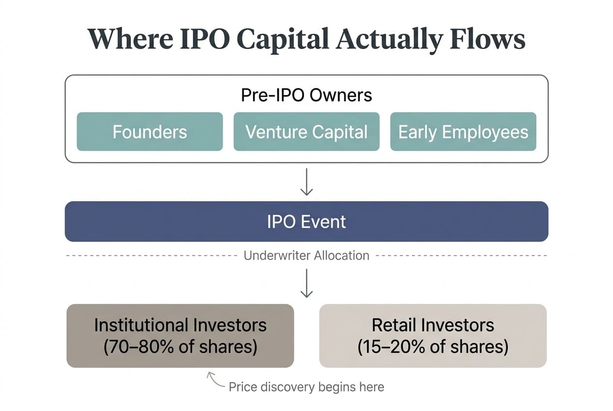 These stories are seductive precisely because they feel democratic. They suggest that the market, for all its complexity, still leaves a door open for the ordinary person who pays attention. And in rare cases, that has been true. But the frequency with which these stories are told has very little to do with how often they actually occur — and almost nothing to do with what an IPO is designed to accomplish.